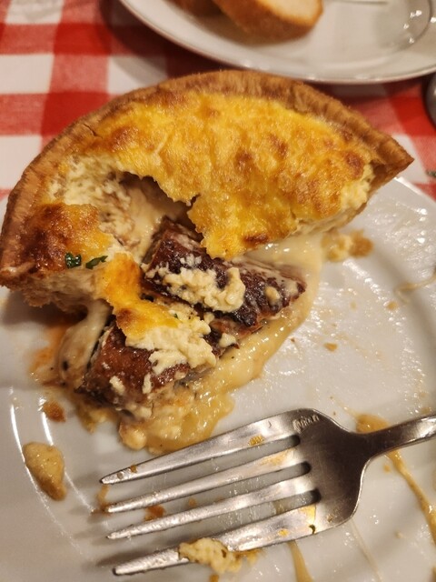 シャルキュトリ、うふマヨ、サーモンのミキュイ、鰻のラクレットキッシュと白ワインを頂く。このミキュイの火入れは素人には無理。旨かった。キッシュもオーダーを受けてから作りため熱々でありナイフを入れたらチーズが溢れる。