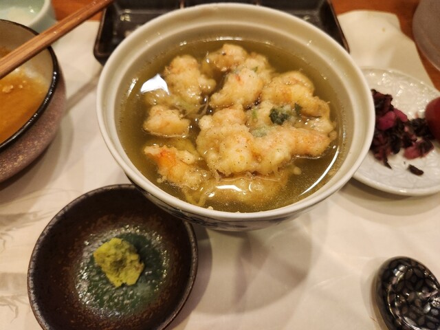 予約をして昼に伺う。狭い店内は満席。日本人は少ない。生ビールで喉を潤した後は日本酒にする予定を変更して白ワイン。コース以外は牡蠣と芋を頂く。残念ながら無花果は品切れだった。コースの〆は迷った末に天茶にする。大満足
