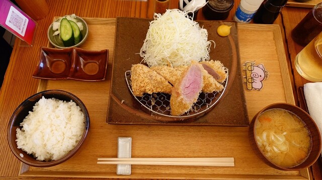 鹿児島県産純血黒豚はお肉の味がしっかりとしていてとても美味しいです。ご飯がとてもよく進んでしまい、大盛2杯はあっという間になくなりました。