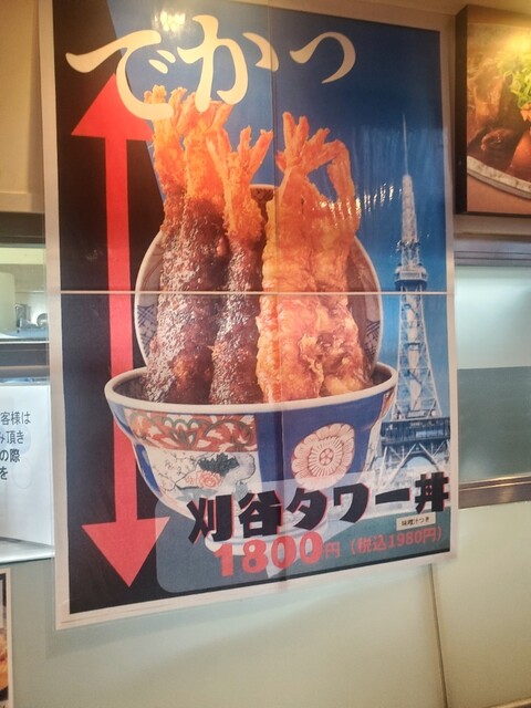 久しぶりに寄った刈谷パーキングのめしやで、夫とシェアして食べるのにタワー丼を注文しました。エビの天ぷらとフライ(味噌ダレ)が各3本で計6本ついて、ご飯の上は卵とじになってました。エビフライも天ぷらも実がギッシリで揚げたてアッツアツで最高に美味しかったです。これで1800円ならお値打ち価格だと思いました。