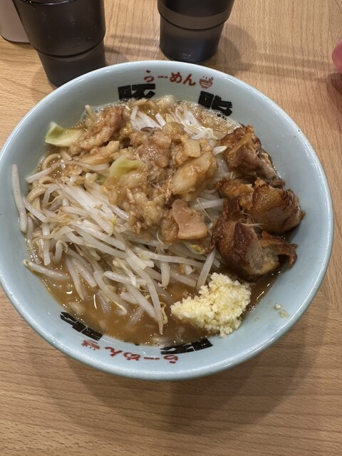 二郎系インスパイアの汁なしまぜそばを食べてみたくて初チャレンジしましたー!にんにくタシ、やさい普通、あぶらタシです。麺量は指定しなかったです。