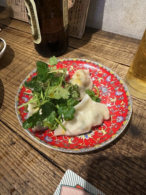 パクチー水餃子、ラムとニラ?水餃子めっちゃ旨し!焼き餃子が何故か普通ー、、(笑)