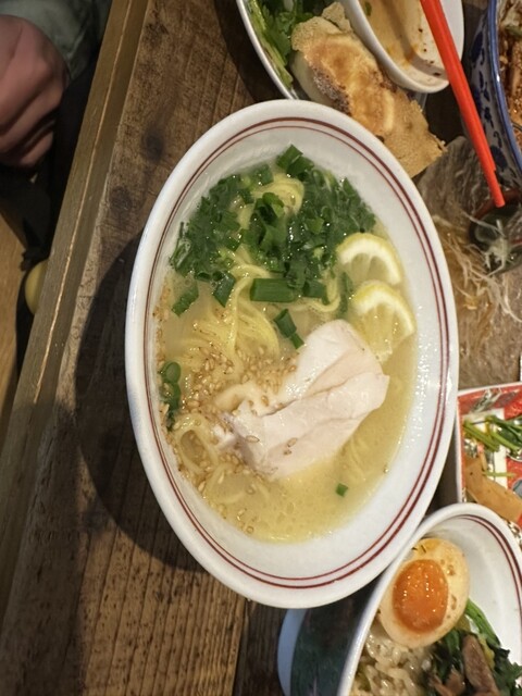 ラーメンは鶏出汁レモン入りシンプルで良き!小さな一口ラーメンですね。