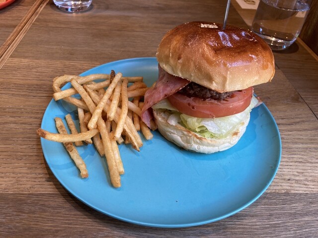ベーコンバーガーを実食。何といってもパテがジューシー。溢れる肉汁をバンズがどんどん吸うので旨味が凝縮されたハンバーガーに変貌した。