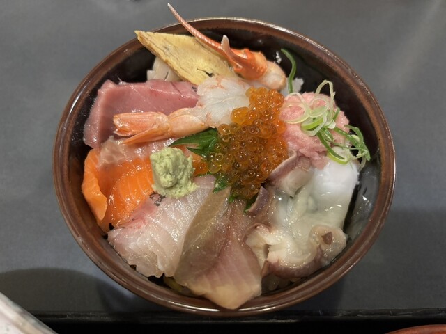 海鮮居酒屋らしく、海鮮丼には旬の食材が並びこれだけでも十分満足ができるのに、本気のつけ麺がセットとなっている。