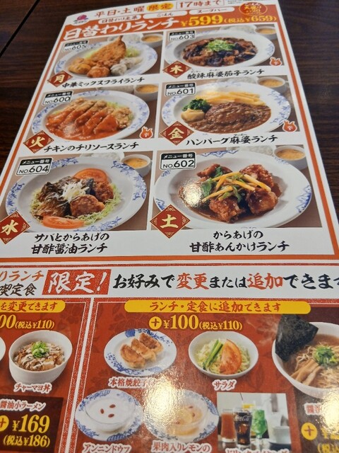 麻辣湯はやはりピリ辛ですねぇ(笑)☀️(`Д´≡`Д´)??食べたこと無かったんですが?野菜タンメン辛口ですねぇ(爆)(@^^)/~~~もっと中国しているのかなと思っていました?瓶のラー油付きですのでかけます(笑)辛いです。鮑3つ乗っています(笑)☀️(`Д´≡`Д´)??辛いので、烏龍茶、レモンジュース、お冷や追加ですから(笑)ケチャップとマヨネーズでオーロラソースを(^∧^)作ります。ちょっとポテトの量少ない(爆)(@^^)/~~~やはり餃子は食べておきます(笑)