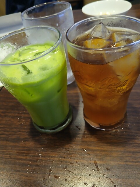 アイス抹茶ラテの機械が調子悪かったので、店員さんに直してもらいました。お茶も急須に入れて準備します。この容器でおちょこ4杯分くらいです。コカ・コーラとジンジャーエールを持ってきます。