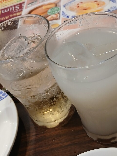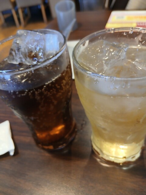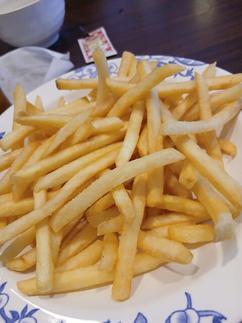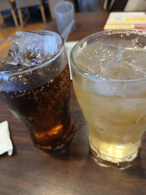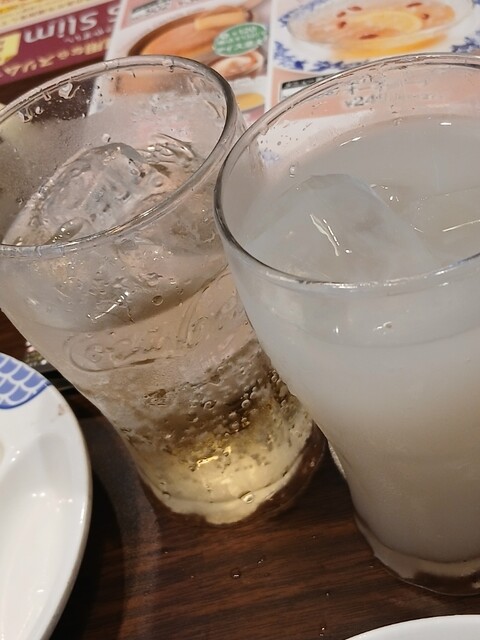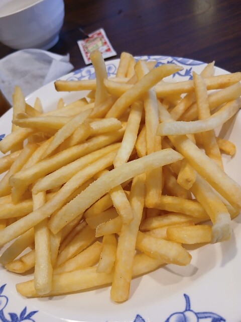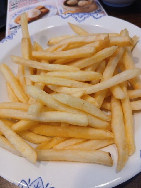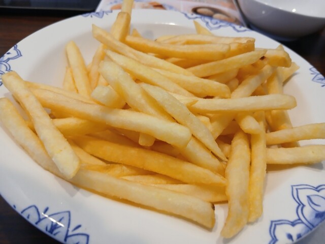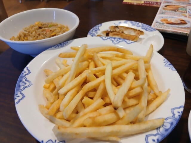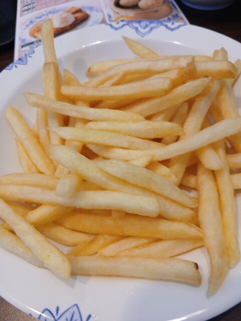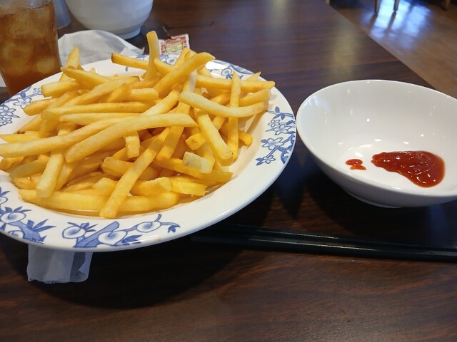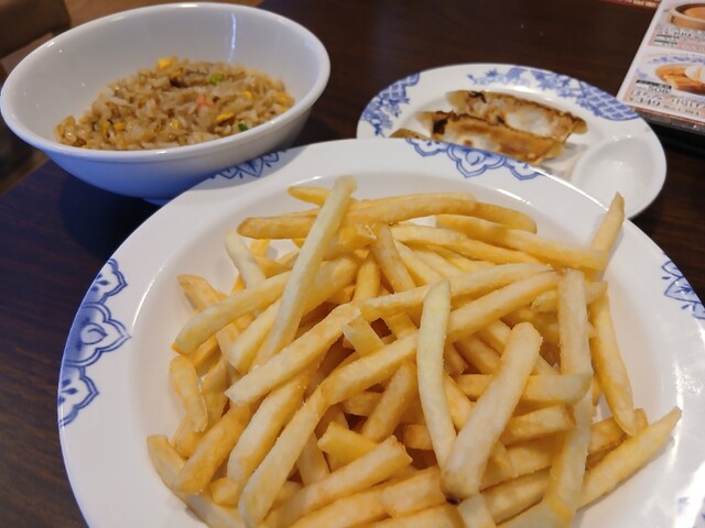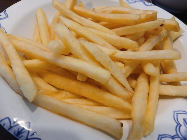 2つあるので、片方は醤油、もう片方はソースをかけて食べます。サクッとしてうまいです。少し小さくなったように思いましたがご時世でそうなんでしょうか?餃子も食べて白ぶどうジュースとレモンジュースも飲みます。無くなってきたので、追加で山盛りポテトフライを頼みます。野菜ジュースと烏龍茶を追加で飲みます。締めは餃子をもう一つ頼みました。ご馳走様でした。