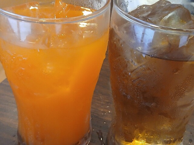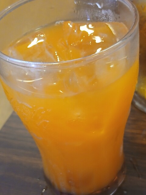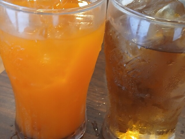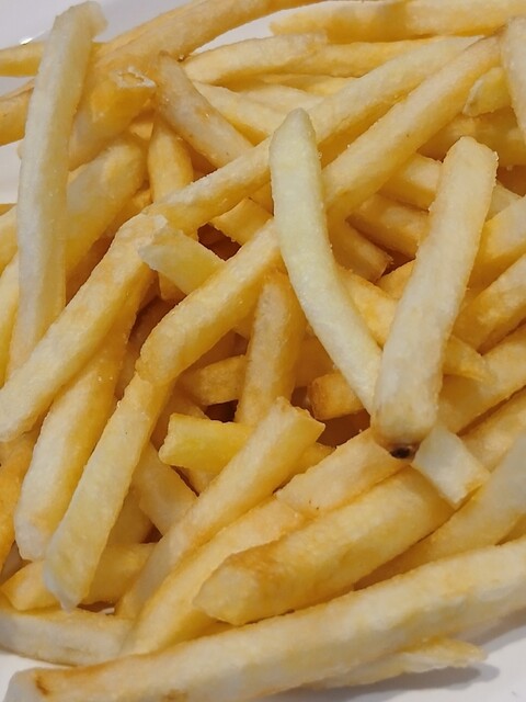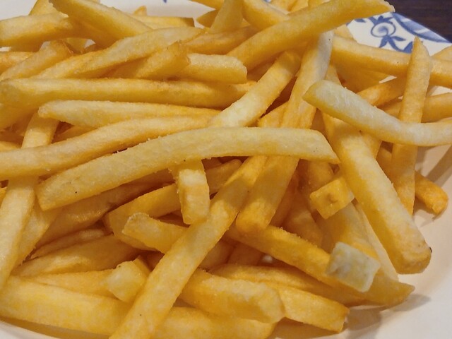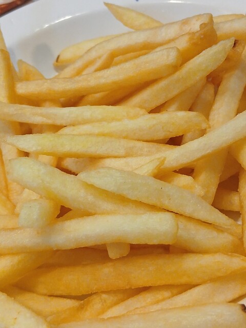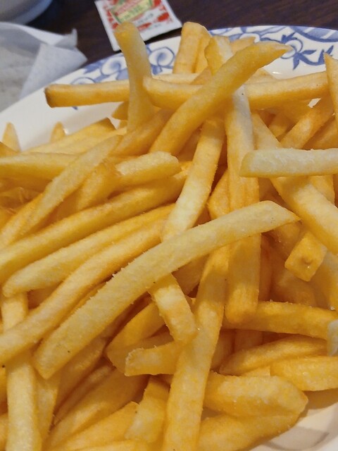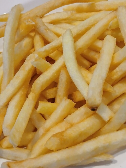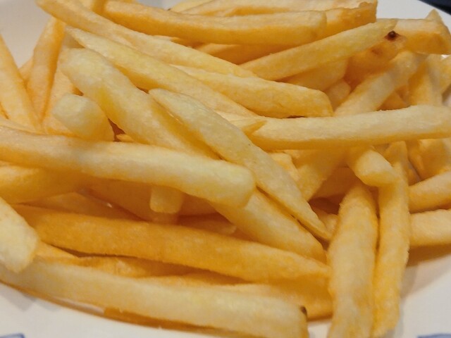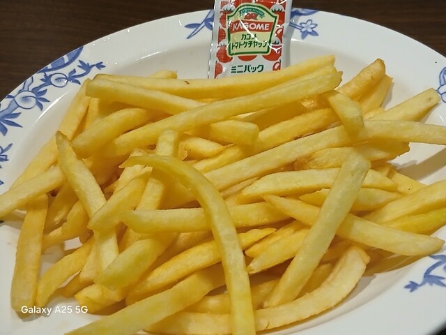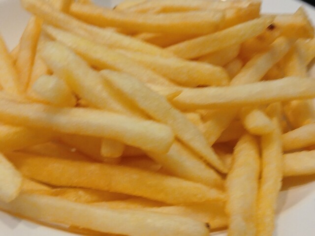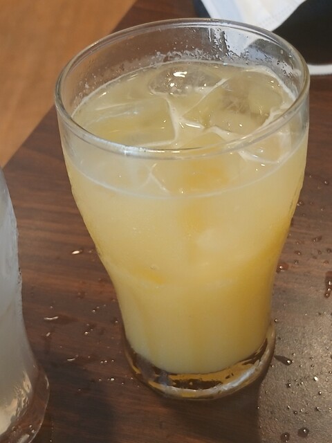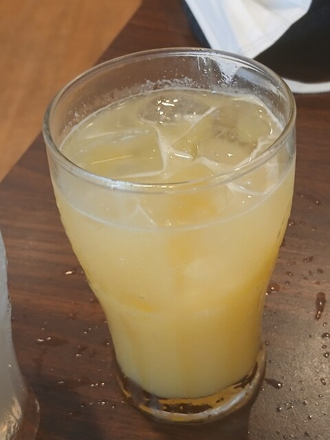 2つあるので、片方は醤油、もう片方はソースをかけて食べます。サクッとしてうまいです。少し小さくなったように思いましたがご時世でそうなんでしょうか?餃子も食べて白ぶどうジュースとレモンジュースも飲みます。無くなってきたので、追加で山盛りポテトフライを頼みます。野菜ジュースと烏龍茶を追加で飲みます。締めは餃子をもう一つ頼みました。ご馳走様でした。