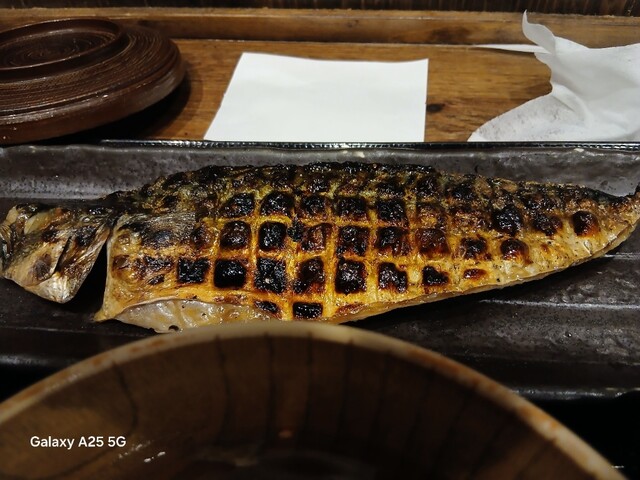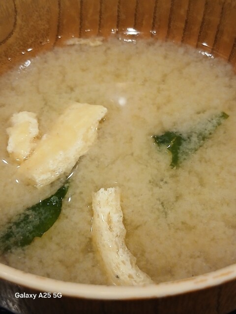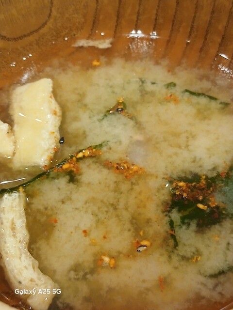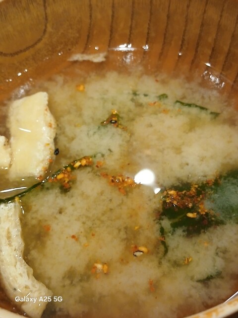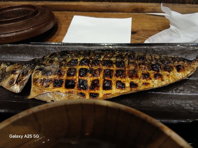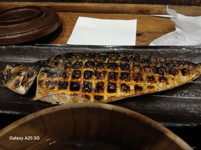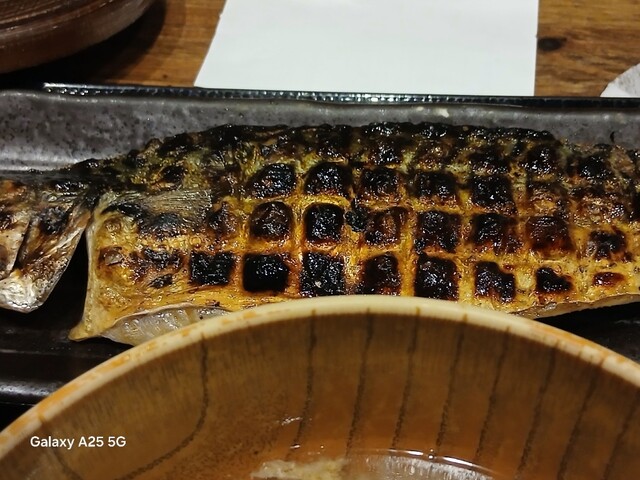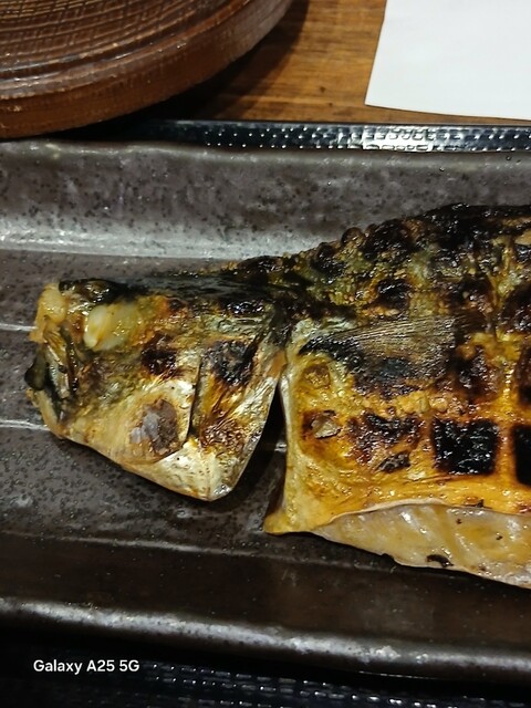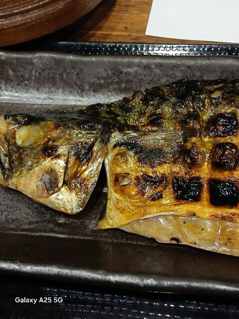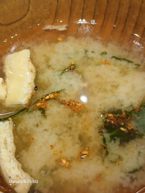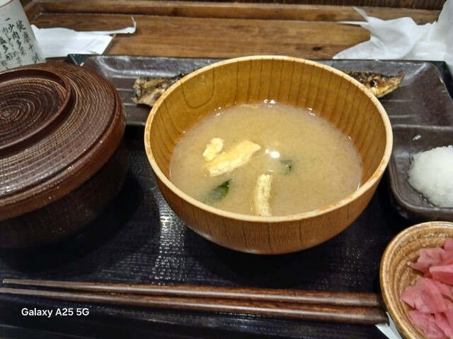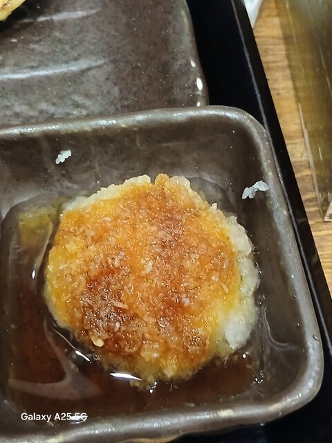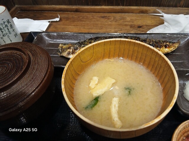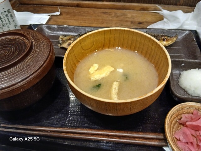 一枚ずつ焼くので❗提供は遅いです。しばらく待って到着しました。メインの魚、ご飯、味噌汁、漬け物、大根おろし、いたってシンプル(@^^)/~~~醤油は濃口、薄口ありますねぇ(笑)☀️(`Д´≡`Д´)??唐辛子を味噌汁に入れます。魚もある程度食べやすいように、分けておきます(爆)(@^^)/~~~身がふっくらしていて、馬い。大根おろしに絡めて(笑)旨し‼️なかなか焼き魚が❓(@^^)/~~~食べれる店は少ないので、旨い✨です。団体客が来たので、お暇します。ご馳走様でした‼️旨かったです。