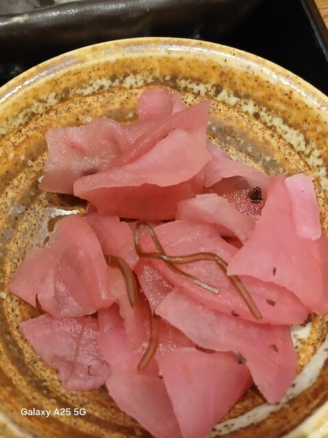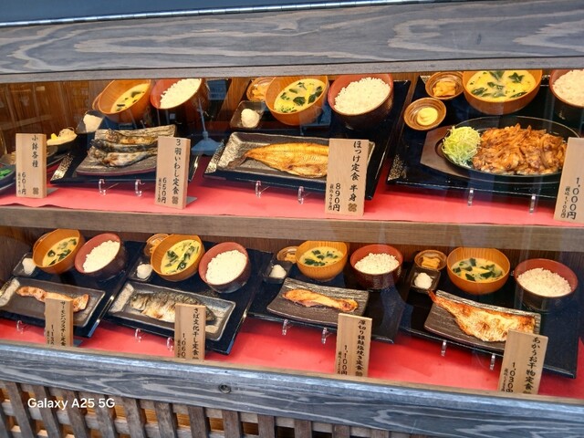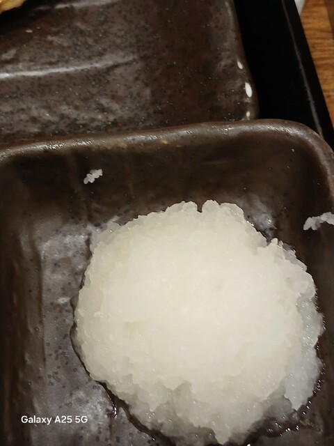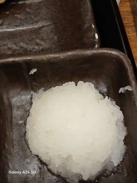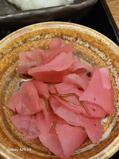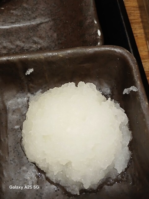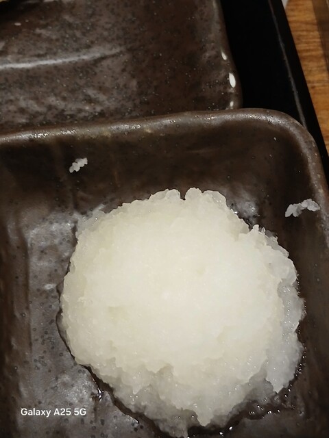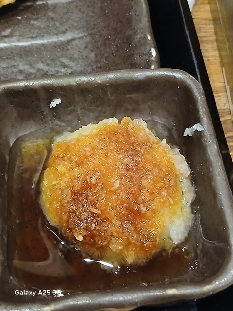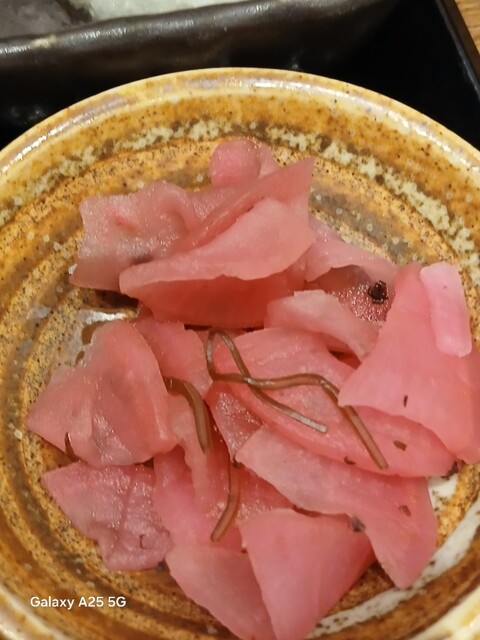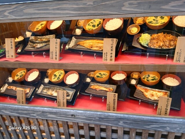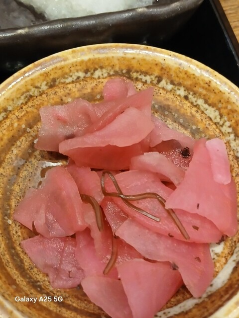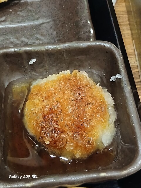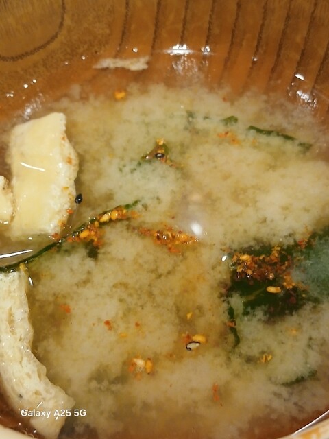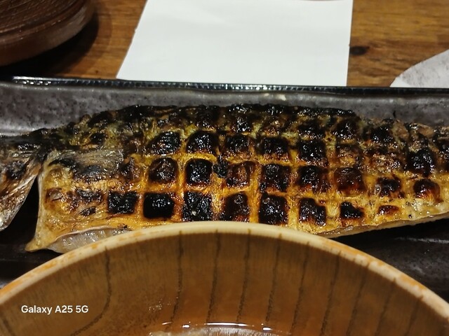 一枚ずつ焼くので❗提供は遅いです。しばらく待って到着しました。メインの魚、ご飯、味噌汁、漬け物、大根おろし、いたってシンプル(@^^)/~~~醤油は濃口、薄口ありますねぇ(笑)☀️(`Д´≡`Д´)??唐辛子を味噌汁に入れます。魚もある程度食べやすいように、分けておきます(爆)(@^^)/~~~身がふっくらしていて、馬い。大根おろしに絡めて(笑)旨し‼️なかなか焼き魚が❓(@^^)/~~~食べれる店は少ないので、旨い✨です。団体客が来たので、お暇します。ご馳走様でした‼️旨かったです。