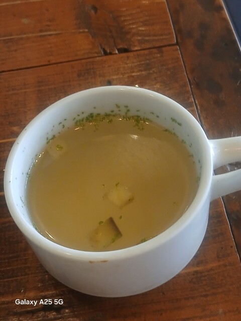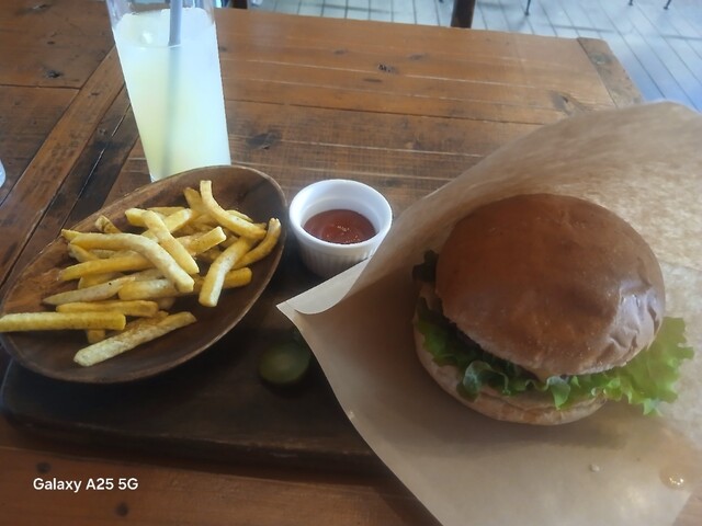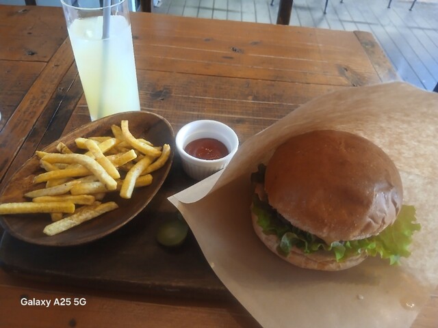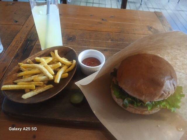 ポテト、ピクルス、スープがつきます(爆)(@^^)/~~~スープはピクルススープですねぇ(笑)☀️(`Д´≡`Д´)??ドリンク付きに変えて欲しい物ですねぇ(爆)(@^^)/~~~チーズバーガーとは書いてなかったですが⁉️チーズバーガープレートで1100円は安い✨です。ランチドリンク、デザートも選べます。旨し。なかなかの満足度でしたね(笑)☀️(`Д´≡`Д´)??ご馳走様でした‼️旨かったです。
