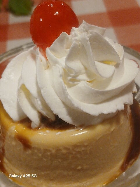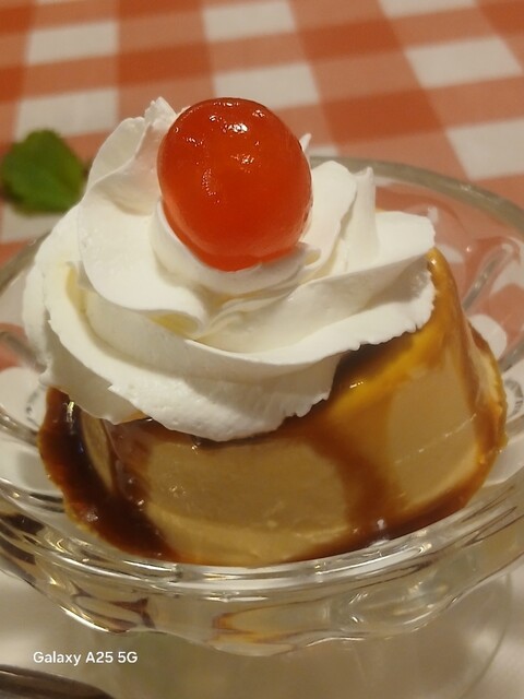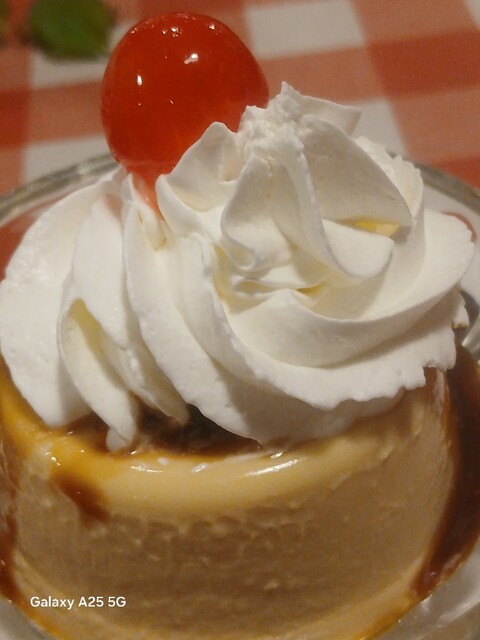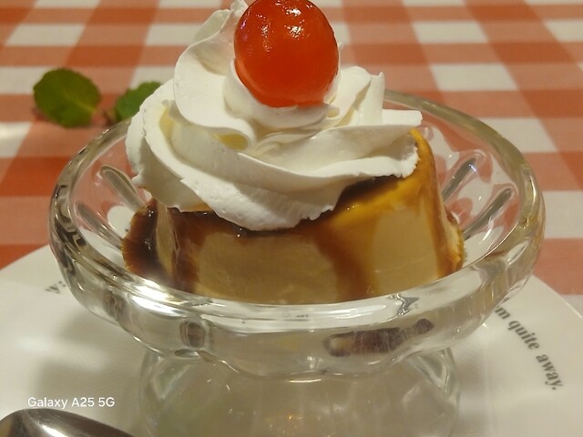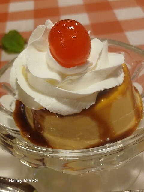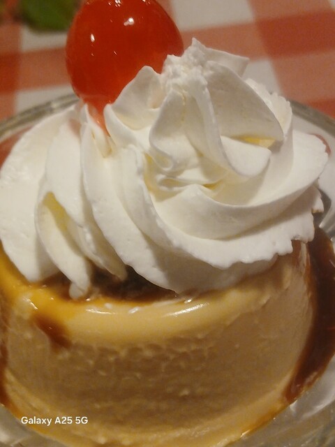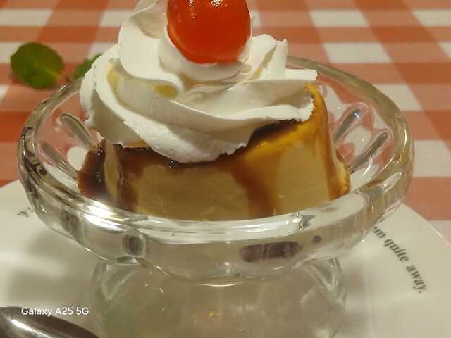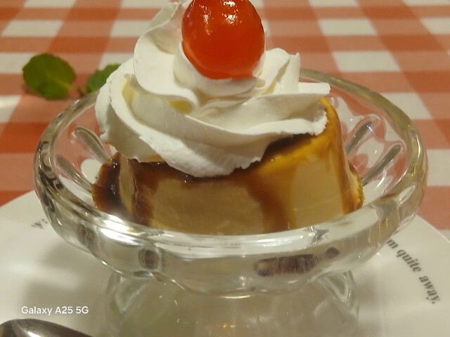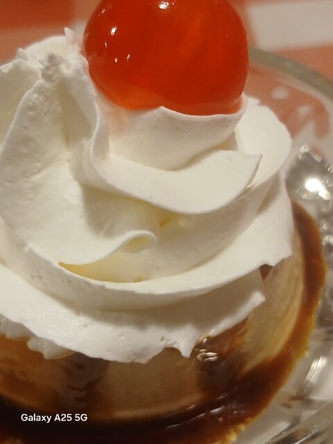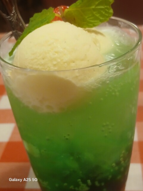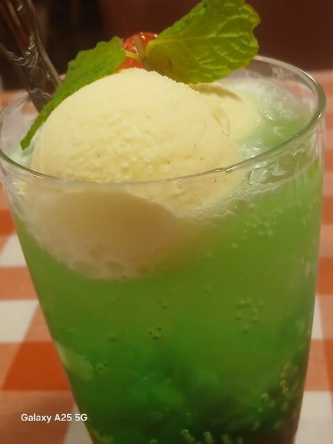定番のクリームソーダ&カラメルプリンにしました(爆)チェリーではなくお菓子の何かが❓(@^^)/~~~のっています。クリームソーダは最近はメロン意外けっこうありますねぇ(爆)(@^^)/~~~