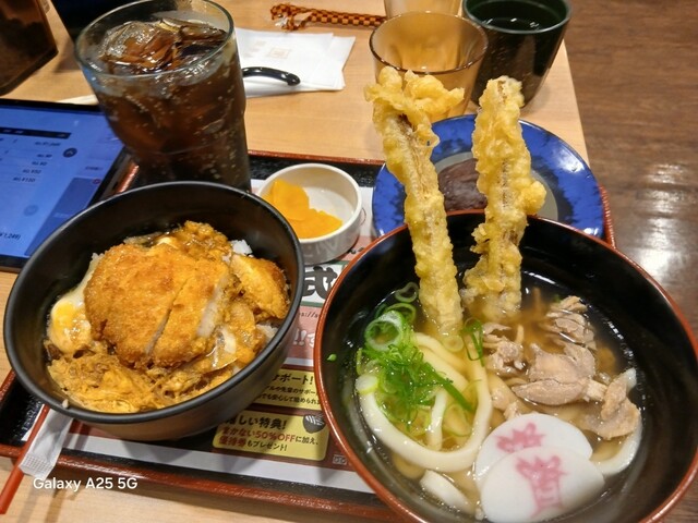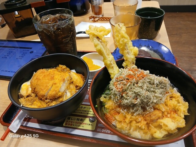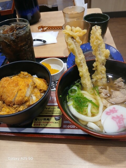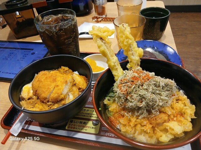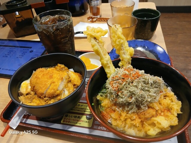 資さんうどん藤沢湘南台店(@^^)/~~~さんにやって来ました(笑)☀️(`Д´≡`Д´)??☀️こちらは各線湘南台駅を(^∧^)降りて、東口、ロード沿いにけっこう歩きます(爆)(@^^)/~~~こちらは老若男女が溢れかえっています(笑)☀️(`Д´≡`Д´)??常に️満席️のようですねぇ(笑)☀️(`Д´≡`Д´)??昼時に入って❗189番でしたので?30.40人待ちでした‼️待つところがないので(笑)入り口付近に人が溢れかえっています(笑)☀️(`Д´≡`Д´)??さばき方をもう少し考えて欲しいですが⁉️30.40分過ぎたでしょうか。しばらく待って着席しました(爆)いろいろなものがありますが❗しあわせセットにしました(爆)ドリンクバー✨はありません。こちらはミニ資さんうどんごぼ天、ミニカツとじ丼、ミニぼた餅、コカ・コーラも頼みました(爆)(@^^)/~~~混んでいるのでなかなかきませんねぇ(笑)☀️(`Д´≡`Д´)??ようやくきたので食べます❗馬いですねぇ(笑)☀️(`Д´≡`Д´)??ごぼ天、カツ丼、出汁が効いて旨い✨ですねぇ(爆)(@^^)/~~~さすが人気店(@^^)/~~~ですねぇ。とろろ昆布、天かすが(-.-)y-~入れ放題になっています(笑)☀️(`Д´≡`Д´)??お冷やピッチャー、レジの方にお茶がありますねぇ(爆)(@^^)/~~~場所替えて欲しい。