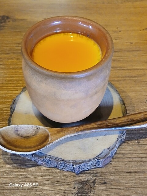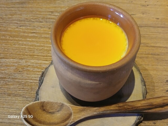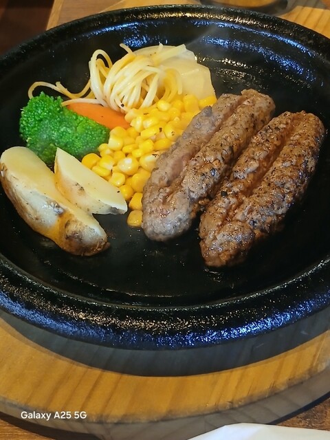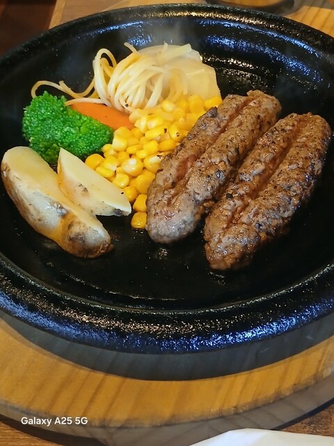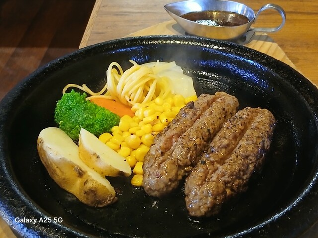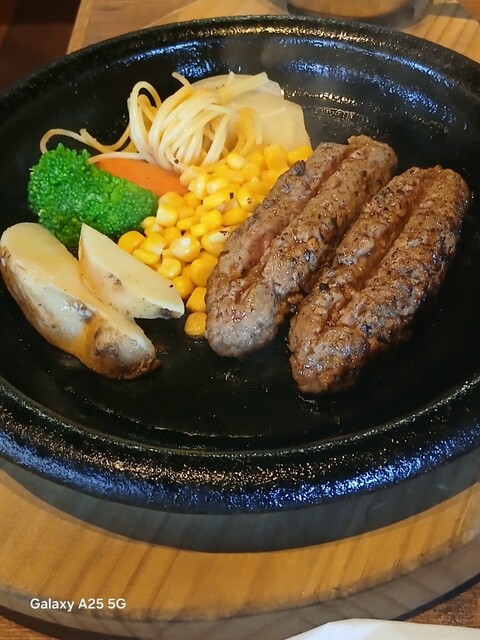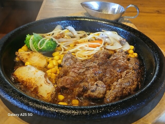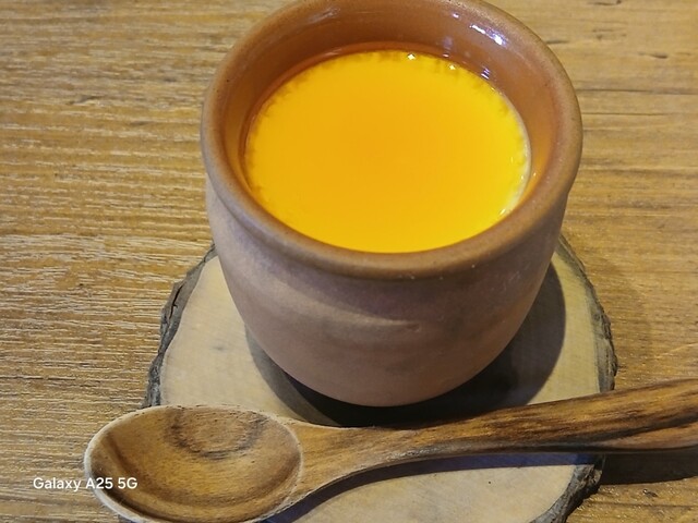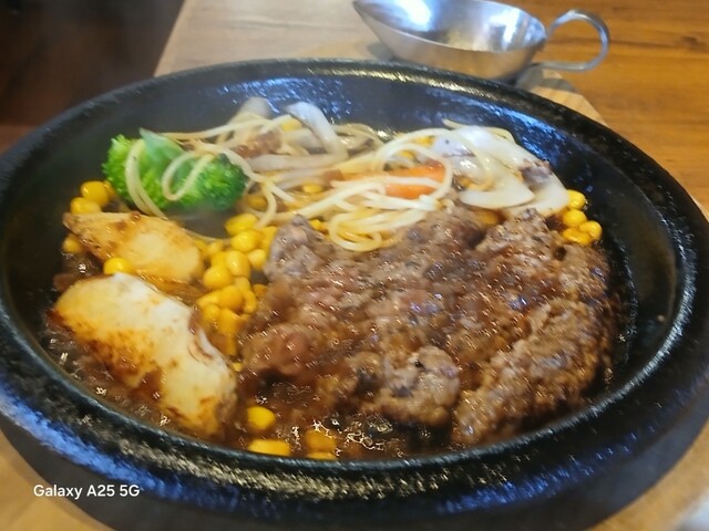 旨味が強ければ?少しの肉で充分な筈ですが…ハンバーグは中はレアなので、鉄板に押し付けます(笑)☀️(`Д´≡`Д´)??今流行りのスマッシュタイプですねぇ(爆)(@^^)/~~~付け合わせは玉ねぎ、ポテト、スパゲッティ、コーン、ブロッコリー等です。オニオンソースを(^∧^)かけていただきます馬い(@^^)/~~~ですねぇ(笑)☀️(`Д´≡`Д´)??流石 黒毛和牛、口の中に旨味が広がります。旨し。ご飯と一緒に食べます。肉は少なくても充分に食べられました。賢い食べ方ですねぇ(爆)(@^^)/~~~デザートにプリンを食べます。カラメルソースではない、和風っぽいソースがかかっていて とても美味しいです。そこそこかかりましたが…旨かったです。ご馳走様でした‼️