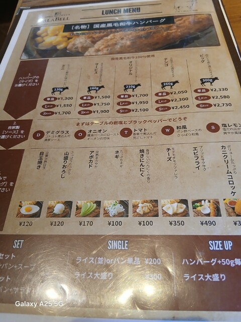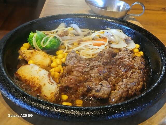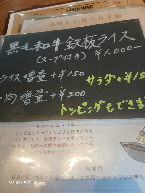 グリルアラベル新杉田分店(@^^)/~~~さんにやって来ました(笑)☀️(`Д´≡`Д´)??☀️チェーン店(@^^)/~~~なんですね?知りませんでした‼️こちらはJR 新杉田駅を(^∧^)降りて、歩くとありますねぇ(爆)(@^^)/~~~杉田家は相変わらず行列ができております(笑)☀️(`Д´≡`Д´)??11時開店の筈ですが?やっておりません(爆)(@^^)/~~~まさか臨時休業でしょうか?貼り紙を見ると?今日は11時半からと書いてありました。とりあえず店の外の椅子で、待ちたいと思います。11時15分くらいに開けていただきました(笑)☀️(`Д´≡`Д´)??中に入りメニューを見ます(爆)(@^^)/~~~黒毛和牛を(^∧^)使っているらしく?なかなかお高い(爆)(@^^)/~~~一番安いのが...鉄板ランチ☀️1000円?ペッパーランチみたいだと思うのでパス、ステーキも高いのでパス、ハンバーグは1300円から、セットを(^∧^)つけると1500円、1700円と上がって行くようです(笑)☀️(`Д´≡`Д´)??サラダは要らないので、ライス スープセット、ミニ130g、オニオンソースにしました(爆)