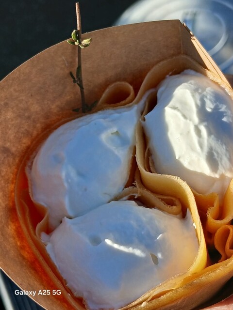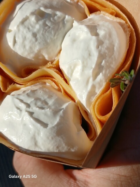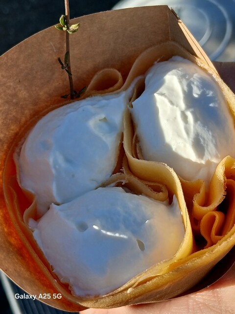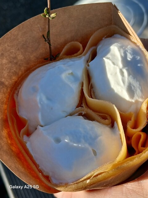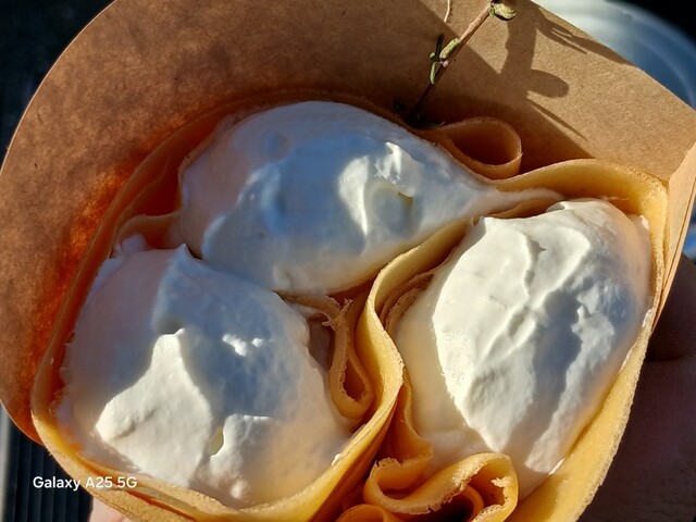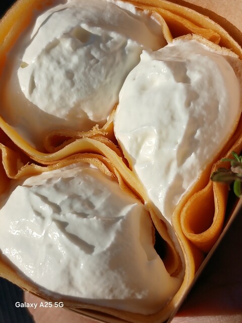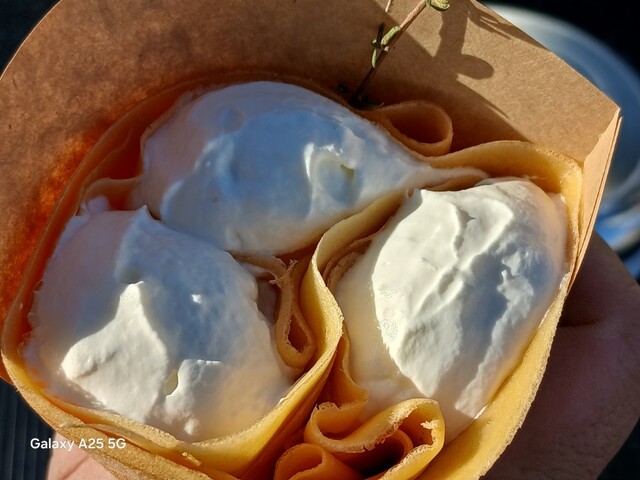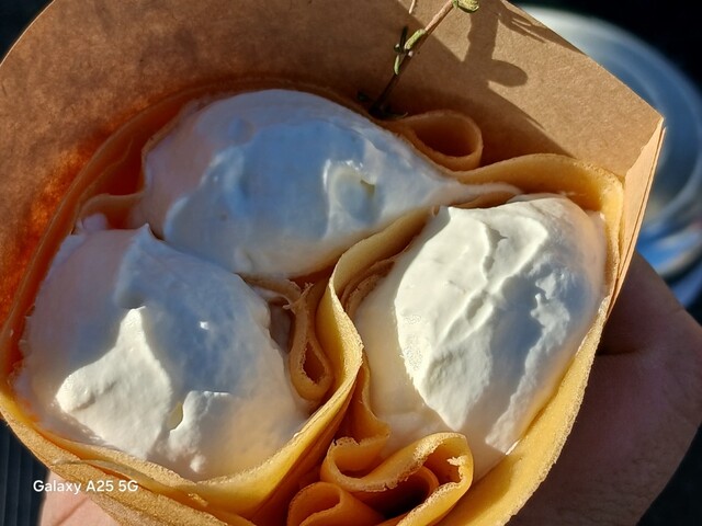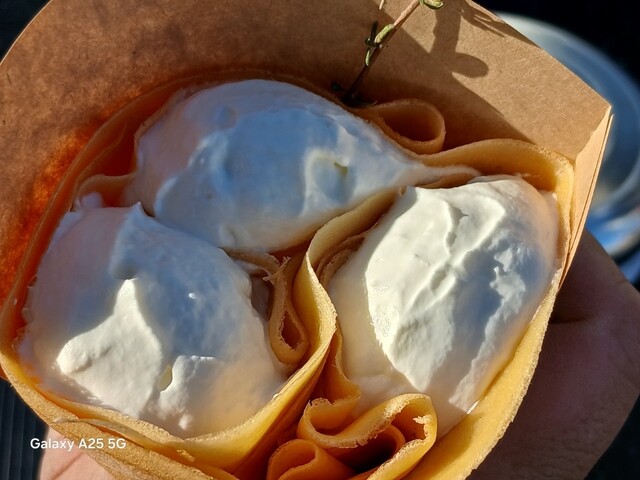 生地が馬い(@^^)/~~~ですねぇ(笑)☀️(`Д´≡`Д´)??やっぱりクレープは生地ですねぇ(爆)(@^^)/~~~生クリームは当然旨し。あっという間に700円超えの商品が無くなってしまいました(爆)次の人が選んでいる途中でしたので(笑)☀️(`Д´≡`Д´)??かなりの高速食いでした。お暇します(爆)(@^^)/~~~ご馳走様でした‼️旨かったです。