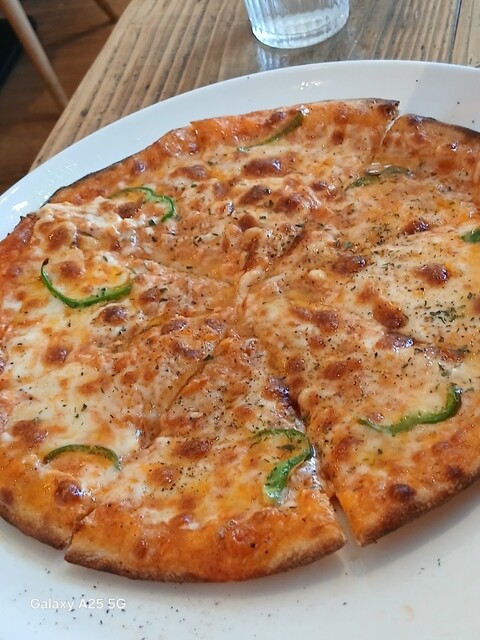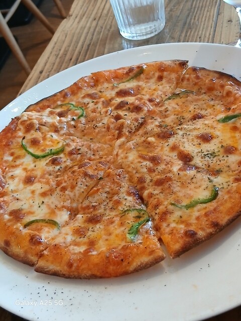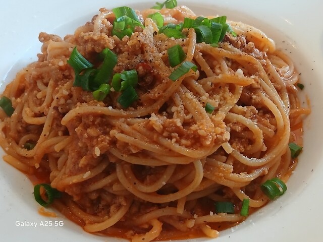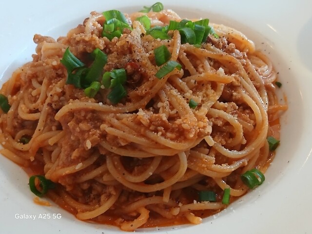 パスタ来ました(笑)熱い♨️です。面倒なので、デザート、チキン、先に持ってきて貰いました(笑)☀️(`Д´≡`Д´)??ミートソースは味は薄目ですが⁉️全体に絡めてあるので、ナポリタン風になります。ボロネーゼじゃないですけど?挽き肉多いです。最近の流行りでしょうか(笑)☀️(`Д´≡`Д´)??チキンは骨が黒焦げで、持ったら手が真っ黒になりました(笑)居酒屋のチューリップですねぇ(爆)(@^^)/~~~パンナコッタ?プリンの親戚です。ピザはクリスピー生地、食べる前にオリーブオイルかけていただきました(笑)☀️(`Д´≡`Д´)??シラスが後からきて美味しいです。お冷やのおかわりもちゃんとして、いただきました(爆)(@^^)/~~~全体的に大変美味しいです。ただ、ボリュームはありません。パスタ大盛り+250円はありです。女性向きだと思いますが(笑)☀️(`Д´≡`Д´)??他の女性2人組は昼から、生ビール飲んでました(笑)おつまみ感覚でもいいですねぇ(爆)(@^^)/~~~ご馳走様でした‼️会計3030円❓上手くまとめました。ポイント貯めるの上手ですねと、店員さんに褒められました(笑)いいお店です。