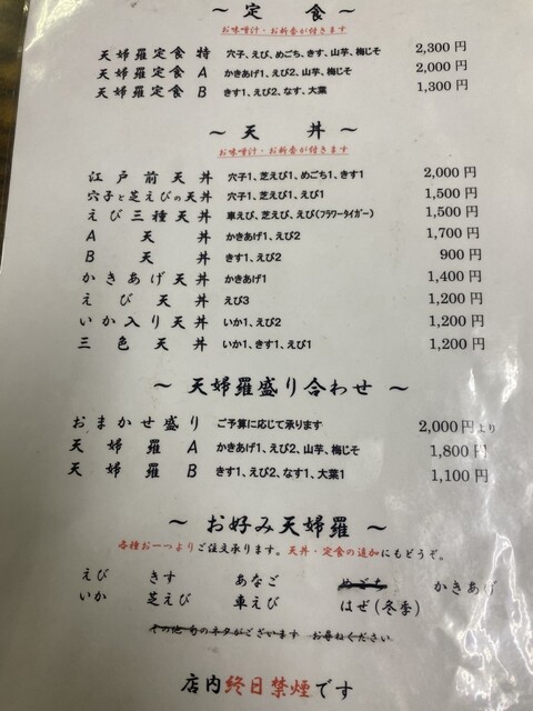 ・天麩羅定食得(穴子、えび、めごち、きす、山芋、梅じそ)2300円