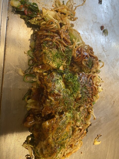 2回目の来店、店内は広島カープを中身に一面野球選手のサイン。本場、広島風お好み焼きという事で店長は広島弁で気さくな人で雰囲気も最高、カウンター席とテーブル席があるがヘラ捌きを見たくカウンター席に座る。各種お好み焼きを頼んだけど、どれも美味しい生地がパリッと中はふわふわ、これが本場もんかと感動級。その他、一品料理もとにかく美味しくハイセンスというしかない。飲み物のボトルは一升瓶しかないです、とりあえずひとりで麦焼酎「二階堂」を半分飲み次回にキープ。お腹が許すならメニュー全て食べたい、次回は今週またいくかな。