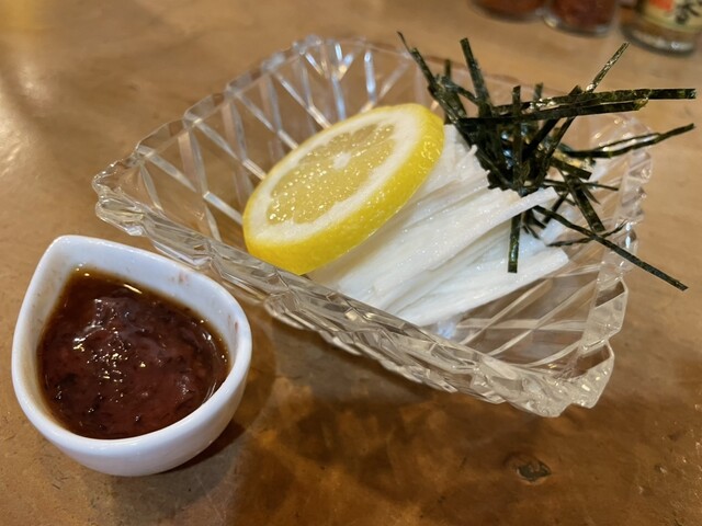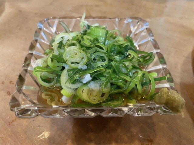 行列必須の人気店と聞き、開店前の17時15分にはお店に着いた。待ちは2組。一巡めで入れないと帰りの電車に間に合わないので助かった。お座敷は予約が多いようだが、カウンターは平日であれば17時半の開店後でも座れるようだ。
