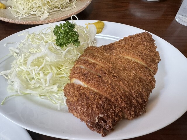 均一な焦茶色の一張羅を纏って登場。立派なサイズで厚みもあります。頂いてみるとロースの肉質は柔らかく、噛むと甘い肉汁がジュワっと漏れ出てお見事な火入れです。そして特筆すべきは衣です。衣がとても美味しかったです。卵の層が厚くサクッと揚げられており、美味しさの秘訣は具体的には勿論分かりませんが長年の技術が詰まっているように思えます。