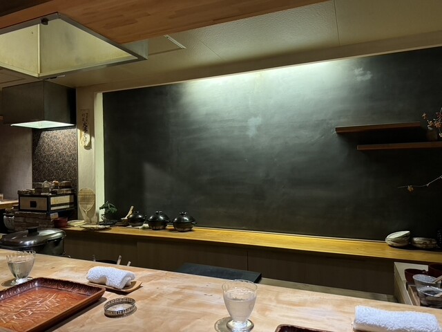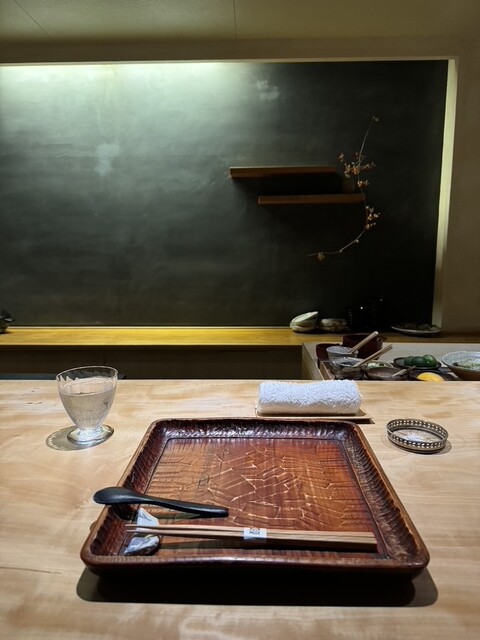 目の前の厨房奥の壁も装飾品が一つあるのみで非常にシンプルがゆえ、視界に入る情報は目の前の一皿に集中でき、料理屋として無駄のない洗練られた店内です。