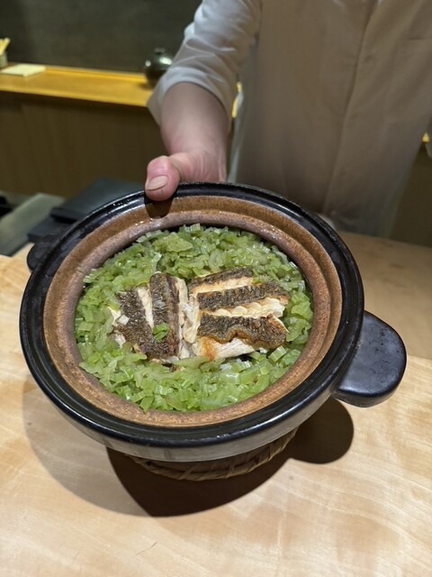 ホタルイカの独特な肝の旨み、深み、香りが余すことなく引き出してあり、ほのかな塩味と米の甘味で頂く、癖になる絶品の料理だった。食べ終わった後の余韻も素晴らしい。