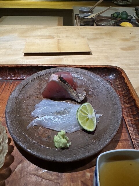 鰹は皮目が炙られ、香ばしさを感じた後、ねっとりとした身から鰹の旨みが口に広がる。
