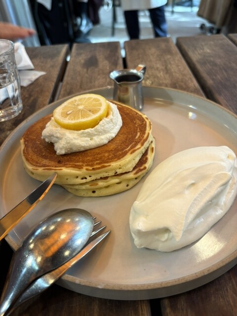 食後にレモンのパンケーキ。