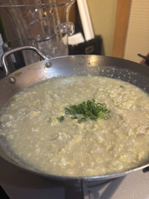 塩スープにモツと野菜の出汁がしっかり出た、卵でとじた雑炊はすーーっと染み渡り
