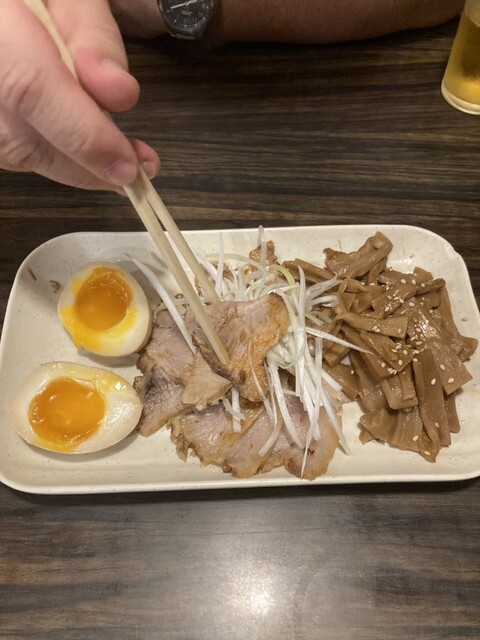 チャーシューはしっとりしてて、脂っこくなく美味しかった。おつまみにもチャーシューがあって、旦那のチャーシューめんと私のラーメンにも