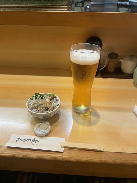 お通しにしめじと緑の葉の野菜?の白和えをいただき、