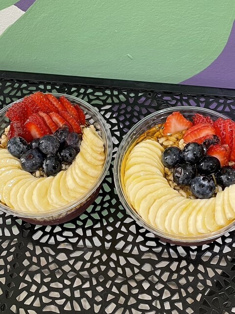 お店の中に椅子がなかったので外で席を取って注文しました。日本のアサイーとは比べ物にならないくらいもったりしててフルーツも冷凍ではなく品質がとても良いもので最高でした。
