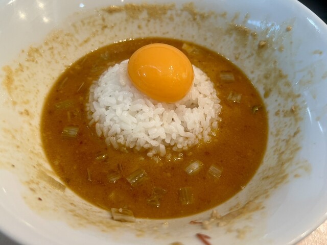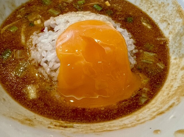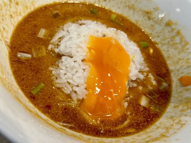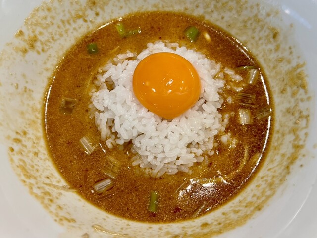 ごはんに旨坦々麺スープへダイブしてもらい卵黄トッピングして、旨卵黄坦々飯を最後まで美味しく完飲完食しました!