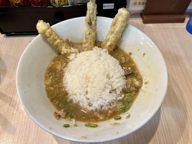 するすると慶史さんの中太ちぢれ麺をすすり終えて、引き続き体重超過中の為、替玉は控えて、「伊吹いりこごはん」に、旨味濃厚伊吹いりこスープへダイブしてもらい、濃厚伊吹飯を最後まで美味しい完飲完食しました!