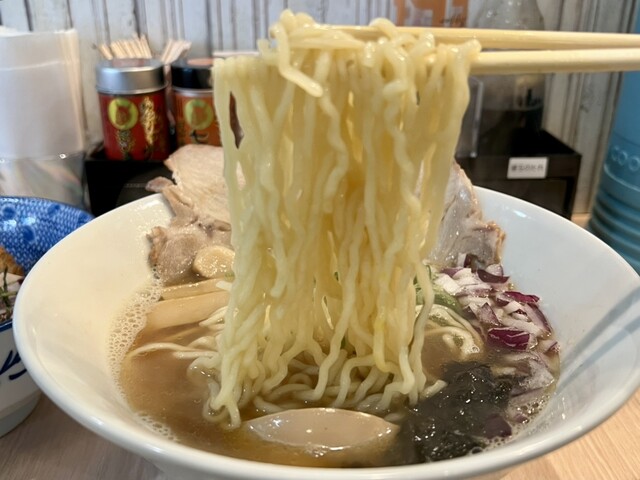 慶史さんの細ストレート麺は、モチモチシコシコで、スープとたくさん絡んでくれます!