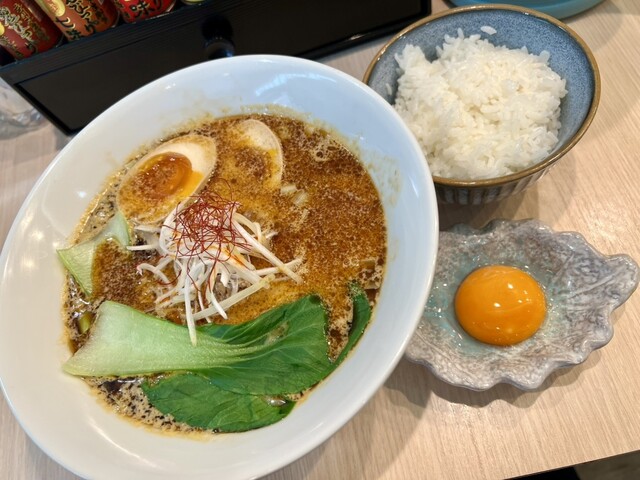 昨年の秋から11杯麺になる「濃厚坦々麺」、今さらですが奥様にトッピングのおすすめ聞いて「煮玉子」(130円)とのことで、「濃厚坦々麺」(1000円)&「煮玉子」(130円)&「白ご飯」(100円)&「卵黄」(100円)をオーダー!