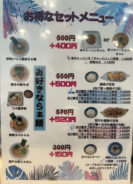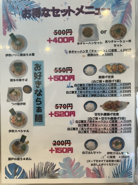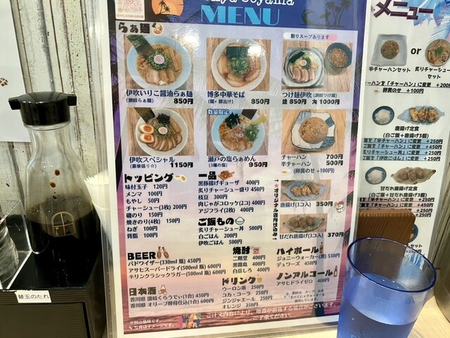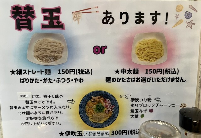 訪問時で、「瀬戸の塩らぁめん」と「博多中華そば」は売り切れと店頭に掲示されていました。