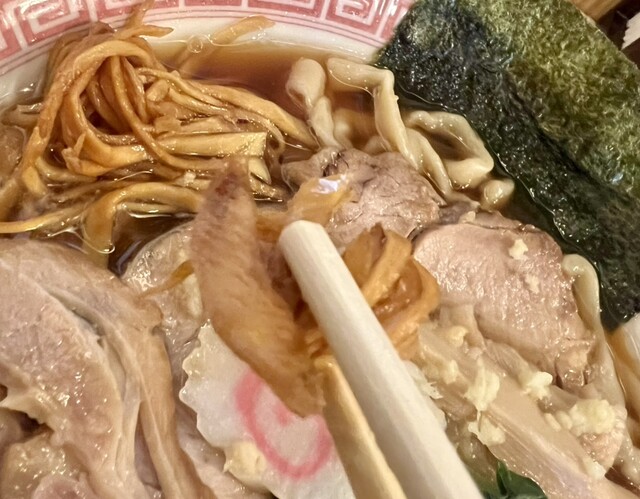 「生姜醤油ラーメン」は、レアチャーではなく、バラ巻きチャーシューを使われていて、箸で持ち上げようとすると、崩れてしまうくらいホロホロです!
