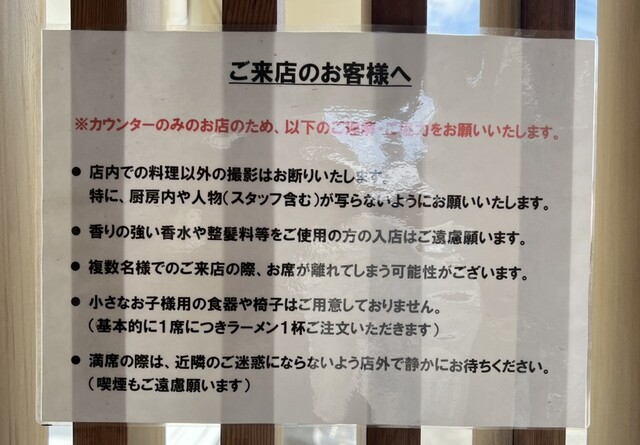 有名店ということはもちろんですし、私が好きな「麺や翡翠」さんや「らぁめんいちむじん」さんの店主様が修行されていたということもあり、前からずっと行きたかったお店です。