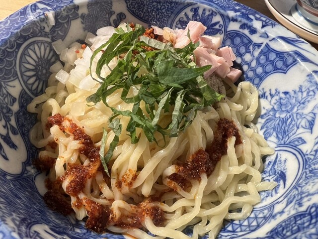 スープすすると、こちらも煮干しと醤油くっきりビターで男前な味わいは、冷やしでも旨みめちゃ感じます!
