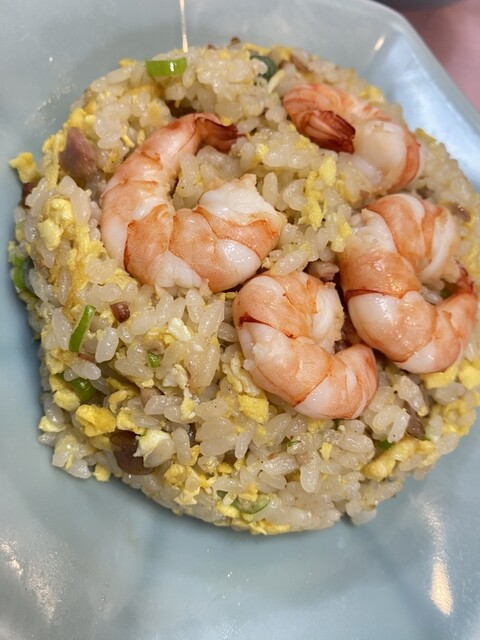 お目当てはお二人の写真ビジュアルでやられたエビチャーハンだ
