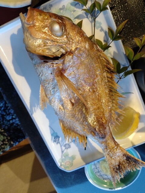 お刺身、煮付け、ひじき、おから、鯛めし。いただいていたら、追加で天ぷら、鯛の塩焼き、お味噌汁…。さらに追加のお刺身...