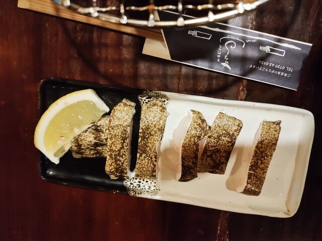 ウツボ初めて自分で焼きました。ゼラチン凄く歯にくっつきまくり。ほんのりケモノ臭で美味しい。