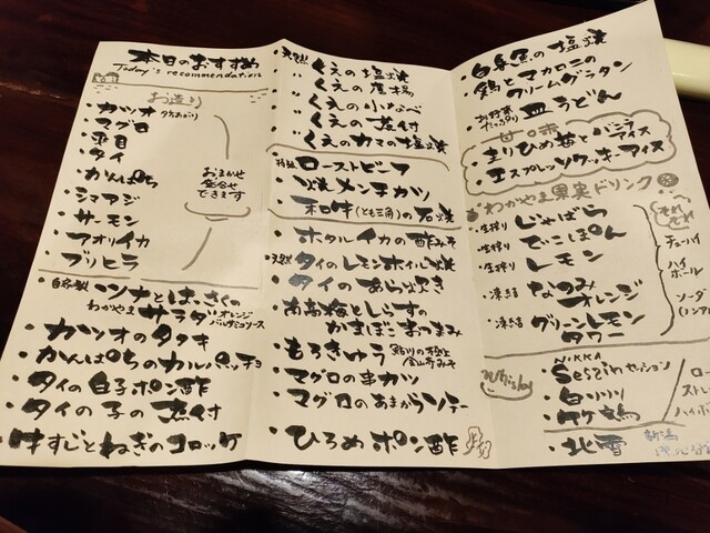 刺身、店員さん全部説明してくれました。かつお、マグロ、平目、タイ、かんぱち、シマアジ、ヤリイカ、ブリヒラ。