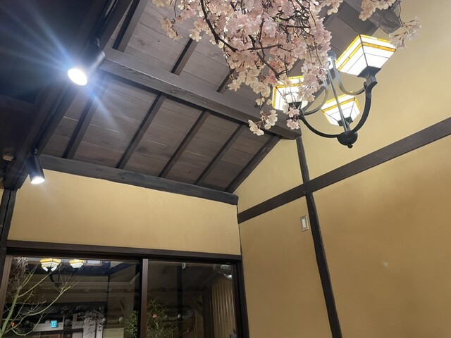 春に伺ったためか、しだれ桜の造花の下の席でとても綺麗だった。席指定できるなら、「奥から2番目のテーブル席」と伝えるのがおすすめ。