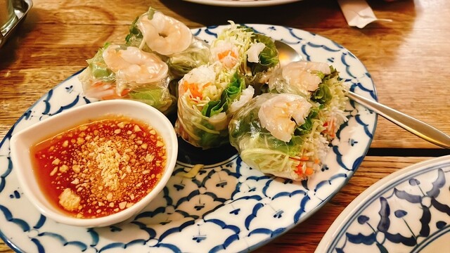 生春巻きは皮がもちもちで普通に美味しい。野菜系が食べたければ頼むくらい。