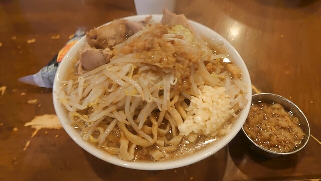 汁ありラーメン300g。キリッとした濃厚醤油の二郎。