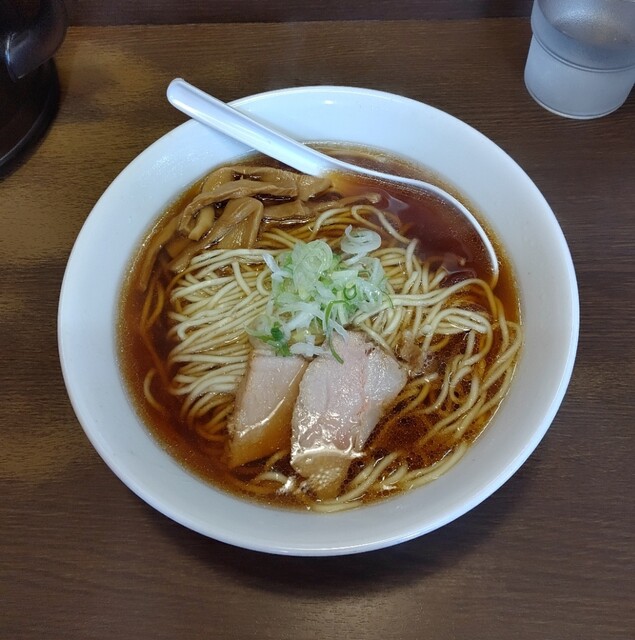 琥珀色にキラキラ輝く綺麗なスープは…ひと口目に煮干しさんがドンと登場して…食べていくうちに優しく感じていく不思議な感覚…